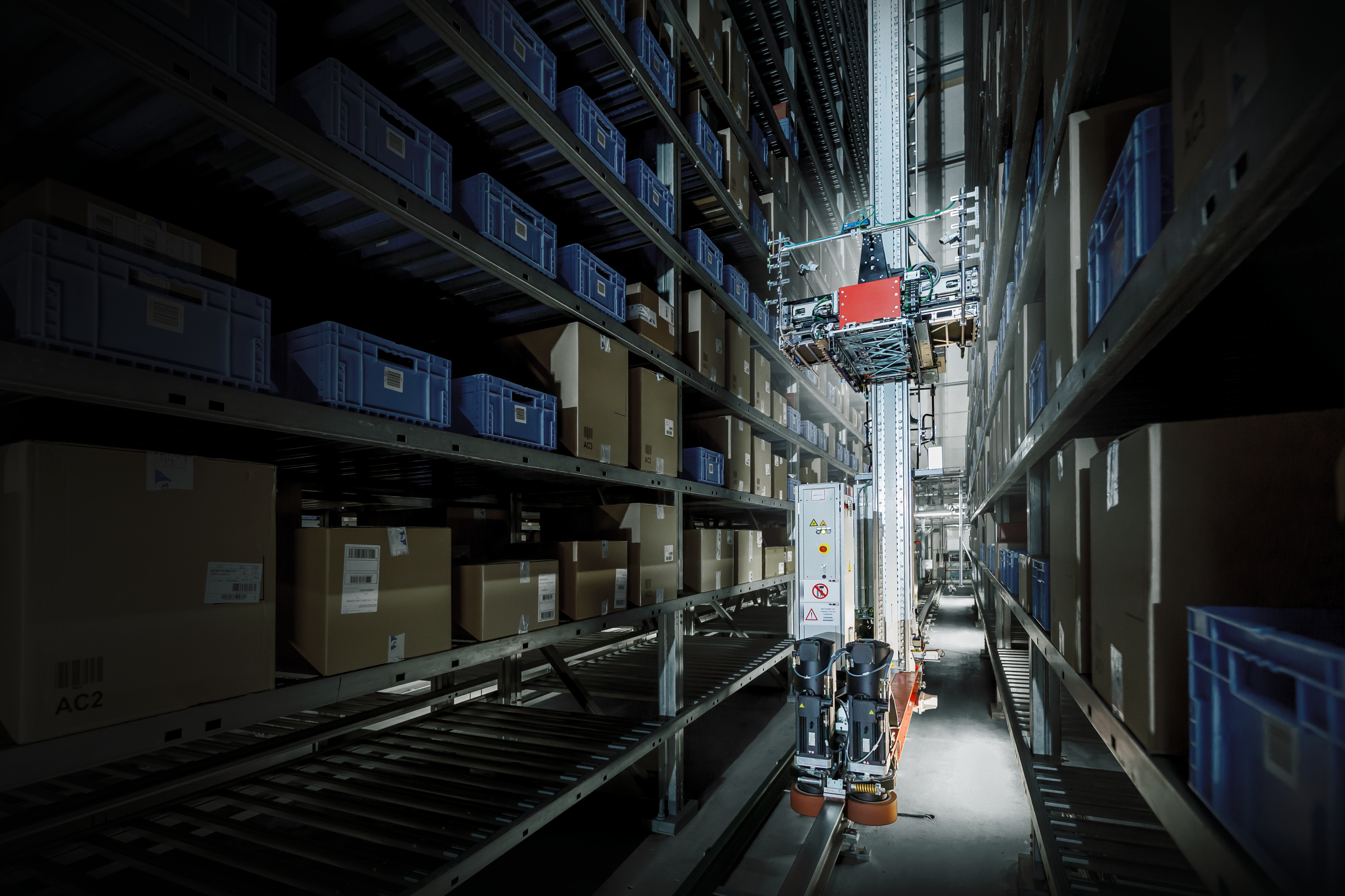 Fokus ligger därför på automatiserad lagring och smarta rullbanor. Jungheinrich Warehouse Control System (WCS) kontrollerar processerna: Vid en del av den 400 meter långa rullbanan finns ett automatiserat system för igenkänning av kartonger som passerar en 3D-mätning och viktregistrering. Sensorer och flera kameror upptäcker också utbuktningar eller avböjningar vid konturkontroll och sortering.