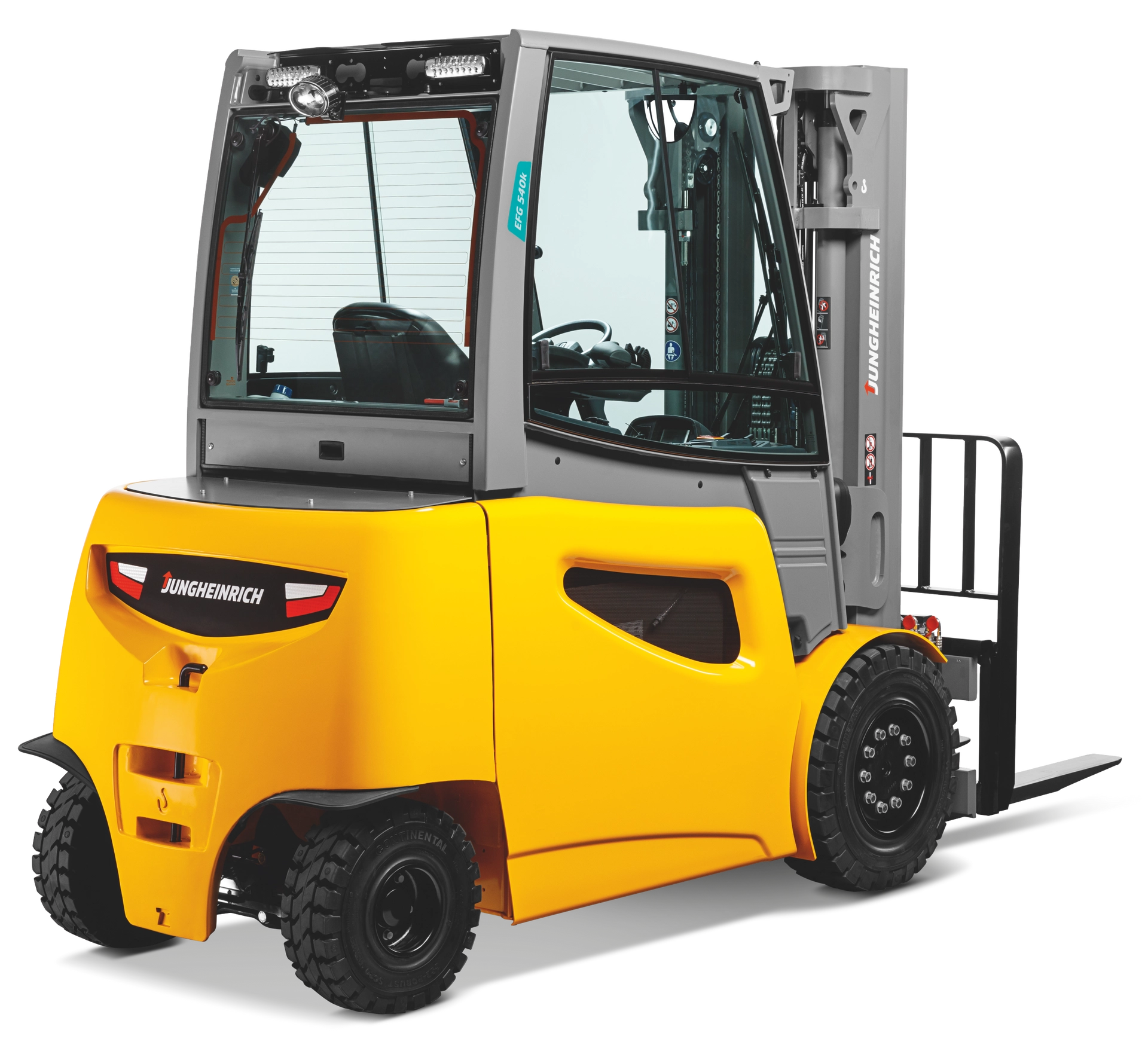 Our powerful and robust Series 5 electric four-wheel counterbalance forklift trucks are ideal for the toughest indoor and outdoor services. Thanks to smart mounting options, individual attachments can be fitted for transporting almost every kind of cargo. With our PureEnergy technology concept, these high-performance trucks get the work done with optimum energy and cost efficiency. Based on measurements according to VDI cycle, they consume up to 20% less energy than comparable competitive models at maximum throughput. The compact mast with extended field of vision and intelligent controls that adapt to each operator and application profile allow full performance with every journey. Various assistance systems and equipment options guarantee safe and efficient work – even under extreme conditions. The ergonomically perfected Series 5 EFG trucks are high-performance powerhouses for demanding operations.