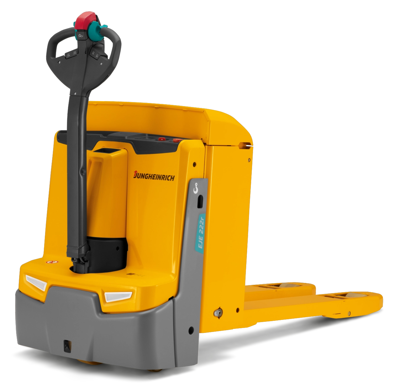 Our robust and powerful EJE 2r electric pedestrian pallet truck is the perfect assistant for efficient loading and unloading of HGVs on the ramp. A patented ramp lift reliably compensates for any height differences, allowing problem-free loading and unloading of the first row of pallets in the HGV. A powerful 3-phase AC motor with a high degree of efficiency delivers impressive performance, while state-of-the-art control electronics and a tiller arm perfectly adapted to the operator facilitate safe and intuitive working. Maximum protection against breakdowns is ensured by the robust frame, reinforced forks and non-contact sensor technology in the tiller arm. In terms of durability, the EJE pallet trucks convince with long-lasting batteries for intensive applications, low maintenance and reduced wear.