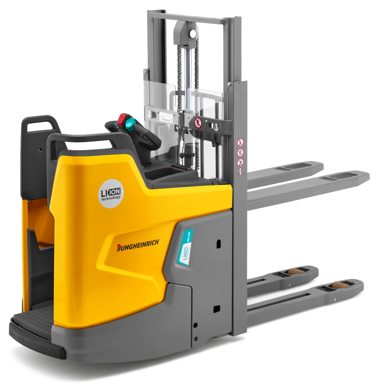 The ERDi is an innovation that fulfils many requirements in just one industrial truck. A double-decker truck which combines ultra-compact dimensions with maximum three-sided protection and a spacious stand-on platform. Where there previously was a large and heavy battery tray, the compact lithium-ion battery modules now blend elegantly into the truck design. A pioneering concept for which Jungheinrich has received several awards. A particular highlight is the detection of the HGV's surroundings: the truck brakes automatically, making intensive ramp travel much easier on the back. In poorly lit HGV interiors, the spotlight comes on automatically, making it easier to pick up pallets. When there is a lot of activity in the transshipment warehouse, the ERDi with its ultra-compact dimensions takes up very little space, while at the same time it keeps operators safely protected. The ERDi can pick up two pallets stacked one on top of the other, reaching racking heights of up to 3,760 mm thanks to its triplex mast – greater performance is impossible.
