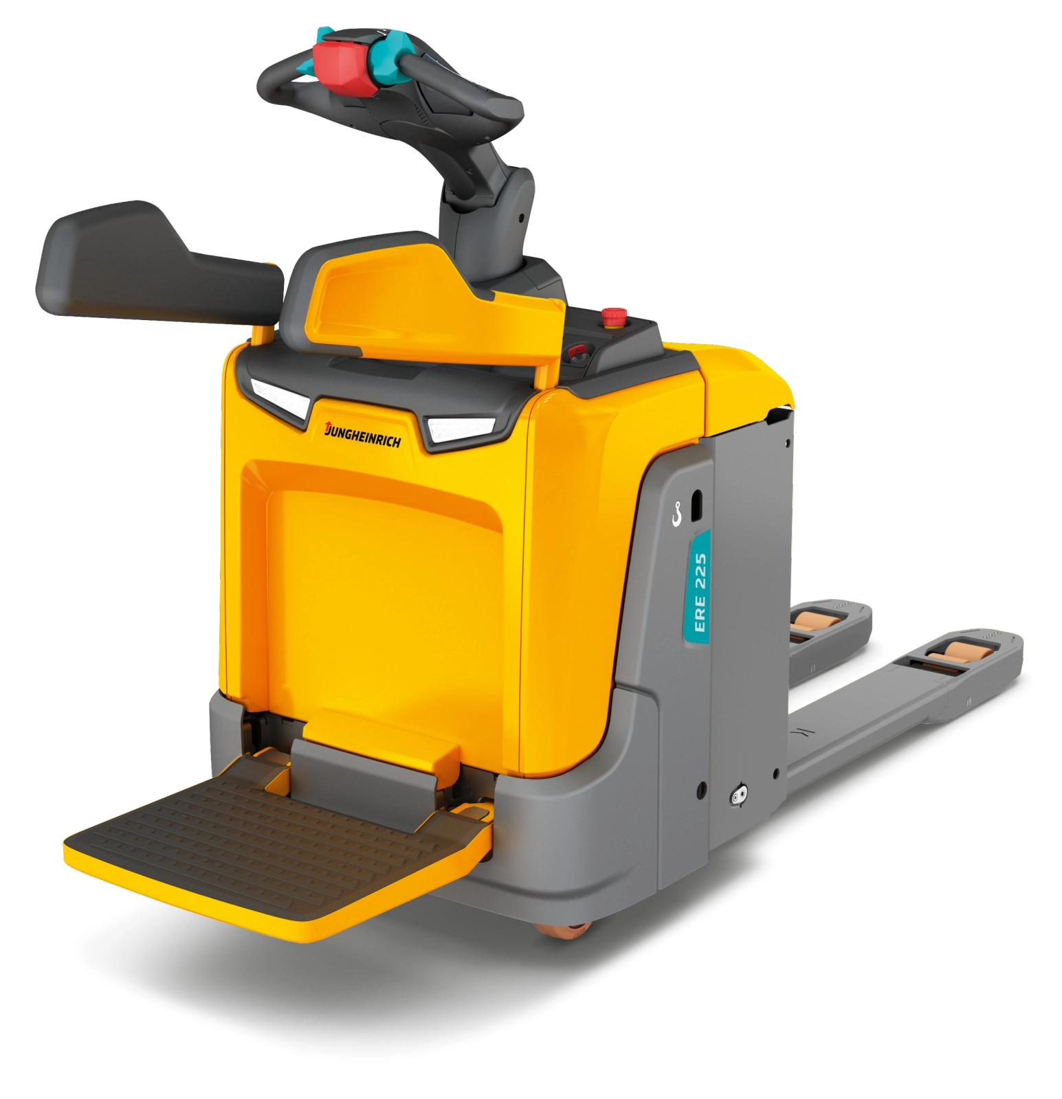 Just hop on and increase your turnover with the robust and adaptable electronic ride-on pallet truck ERE. With this truck you combine agility with the comfort of a ride-on vehicle. With their modular system they are extremely flexible and adapt perfectly to your individual application. From increasing efficiency and adding more safety to equipment for outdoor usage, the ERE trucks are available in numerous modifications. Depending on ergonomic approaches, the ERE offers for example four different platform variations, quick solutions for your needs. They reach high speed and strong acceleration thanks to their powerful propulsion concept. This offers maximum turnover of goods with a decrease of energy usage of up to 33 percent. Our 3-phase AC motors deliver high performance and quick reaction times without losing their agility.