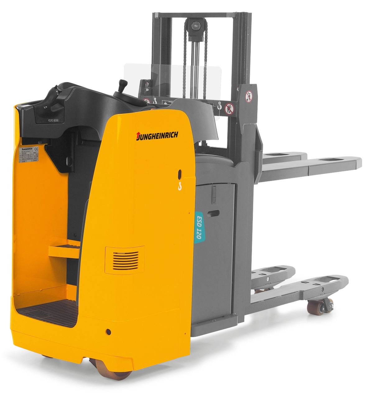 The compact and agile ESD 1 manoeuvres in tight spaces just as confidently as it transports loads over longer distances. Thanks to its folding seat, it allows you to work in both a seated and a standing position. The truck is only 760 mm wide and is ideally suited for positioning pallets against the walls inside HGVs or for use in a block warehouse. In double-decker transport, the ESD 1 easily moves two pallets simultaneously, maximising goods throughput in your warehouse. The sideways seating position ensures work is ergonomic and without neck pain caused by frequent changes of direction. Even more comfort is provided by the centrally configured display, on which all important functions are clearly visible, plus the electric steering for easy manoeuvring.