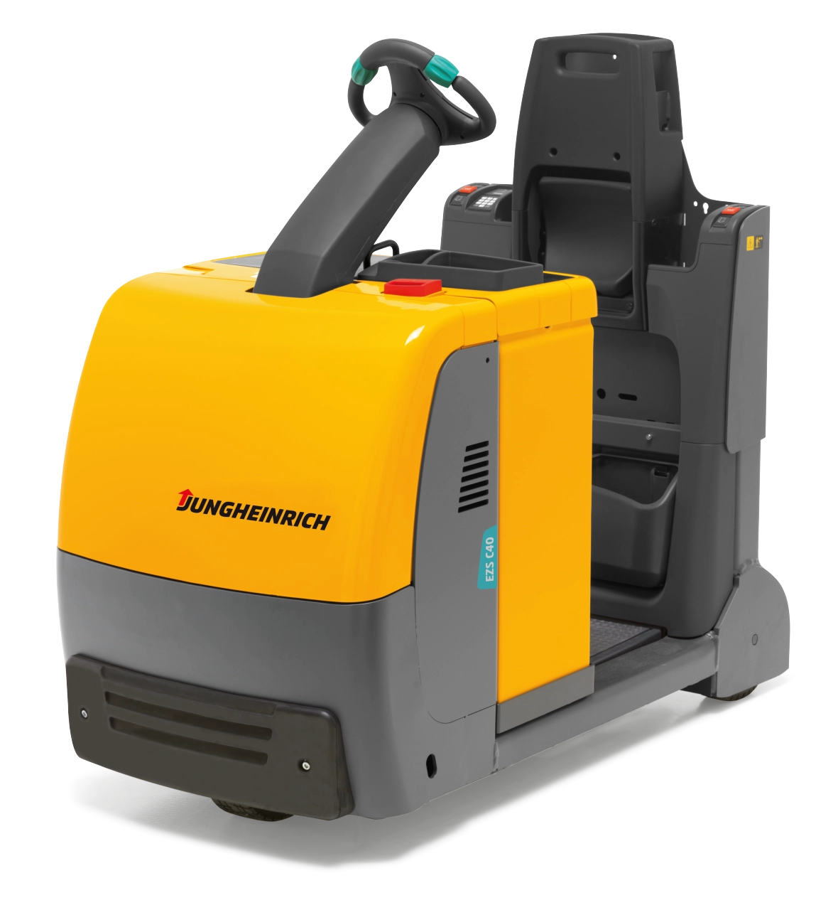 Our flexible and economical tow tractor EZS C40 is the perfect solution for combined indoor and outdoor use. Whether smooth floor or uneven grounds – the superelastic tyres always ensure optimum traction. The versatile vehicle also impresses when working with special trailers or pulling tow trains with special taxi trailers. The easily visible and accessible coupling ensures efficient and relaxed work. Full power is provided by an economical 24-V 3-phase motor with strong acceleration and high end speeds. High flexibility is guaranteed by the universal coupling construction suitable for different trailers. Easy entry and exit thanks to a low stand-on platform relieve the driver. Moreover, comfort and safety are ensured by the short distance between the driver's seat and the load, a supportive backrest, the multifunction steering wheel jetPILOT and various driving safety systems.